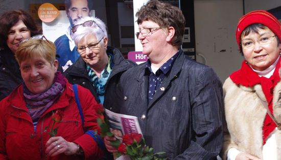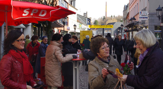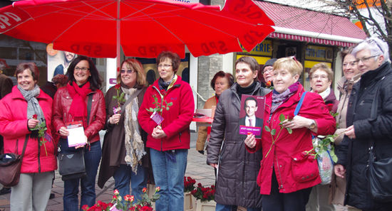 Am 8. März 2012 informierte die Arbeitsgemeinschaft Sozialdemokratischer Frauen (ASF) in der St. Ingberter Fußgängerzone über Lohngerechtigkeit zwischen Männern und Frauen, Frauen in Spitzenpositionen sowie über die Vereinbarkeit von Familie und Beruf. Bilder über die Rosenverteilung finden Sie hier: