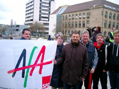 500 SaarländerInnen haben am Samstag, den 13. April.2013, in Saarbrücken ihre Forderungen nach einer gerechteren Welt bekräftigt. Sie waren dem Aufruf des Bündnisses "UmFairTeilen - Reichtum besteuern!" gefolgt und haben eine Menschenkette von der Agentur für Arbeit zur "Europa Galerie" gebildet.